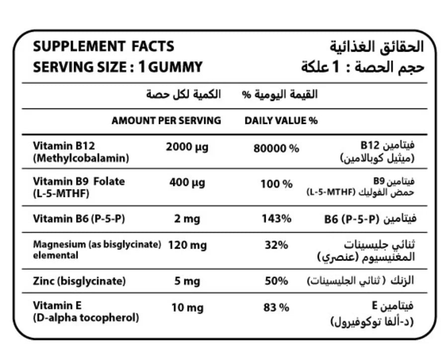 Vitamine B12 (2 000 µg) – Méthylcobalamine active : énergie, mémoire, concentration.