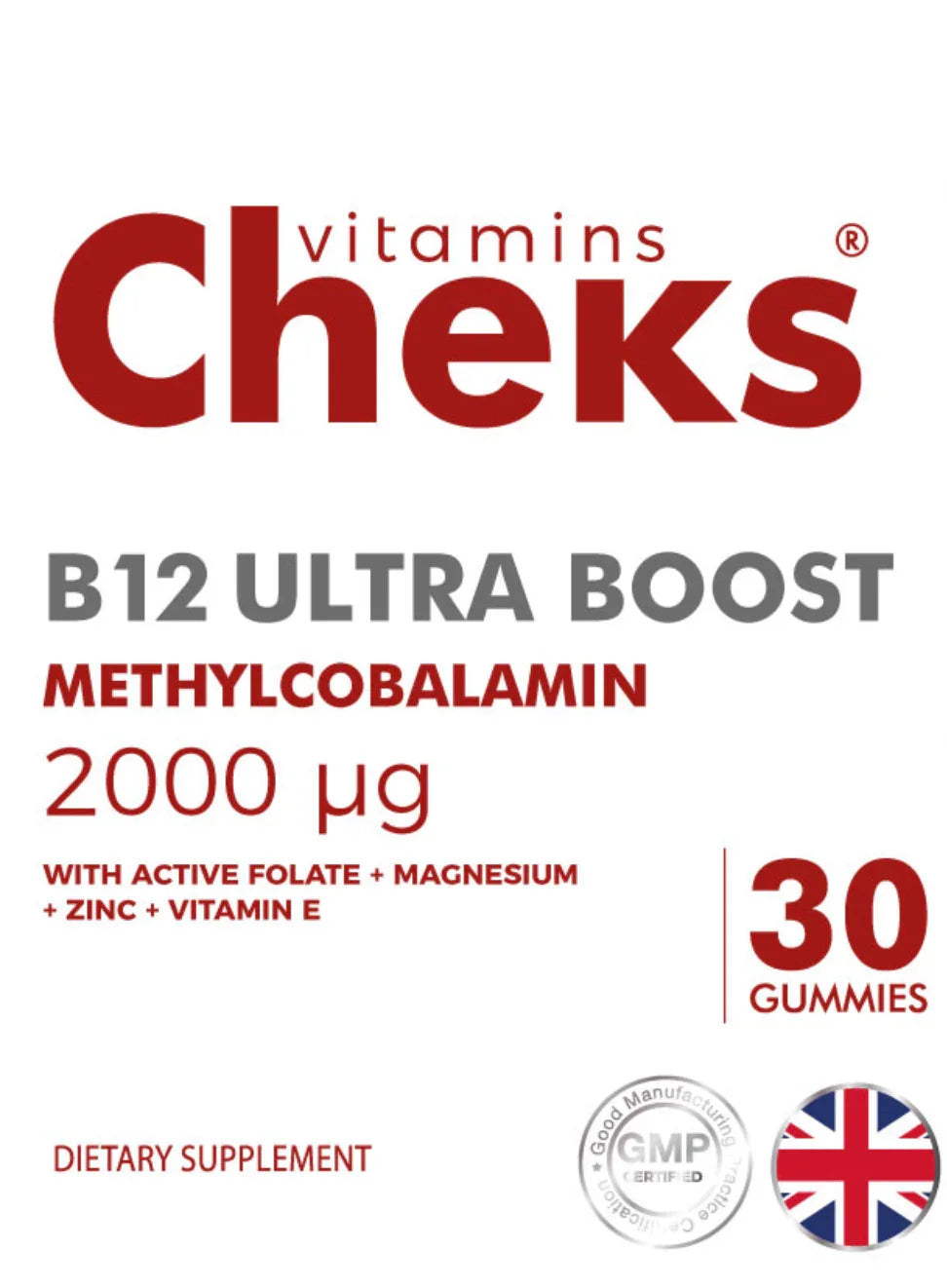 Cheks B12 Ultra Boost, c’est bien plus qu’un simple complément : c’est une formule avancée, concentrée en méthylcobalamine (2 000 µg) — la forme active et biodisponible de la vitamine B12 — pour soutenir votre énergie cellulaire, votre clarté mentale et votre système nerveux au quotidien.