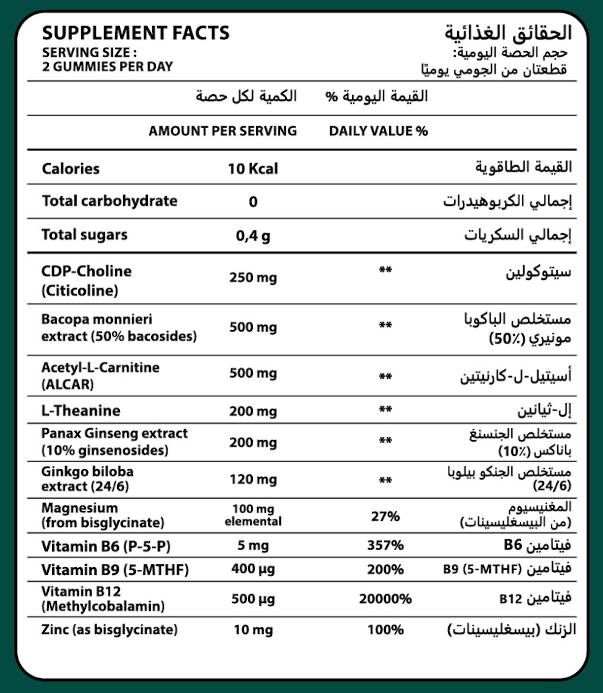 Cette formule à haute intensité associe nootropiques de dernière génération, plantes neuroactives, acides aminés et micronutriments essentiels pour un effet synergique puissant.